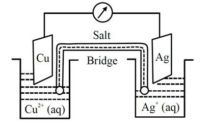 1 Faraday electricity was passed through ${\rm{C}}{{\rm{u}}^{2 + }}(1.5{\rm{M}},1\;{\rm{L}})/{\rm{Cu}}$ and 0.1 Faraday was passed through ${\rm{A}}{{\rm{g}}^ + }(0.2{\rm{M}},1\;{\rm{L}})/{\rm{Ag}}$ electrolytic cells. After this the two cells were connected as shown below to make an electrochemical cell. The emf of the cell thus formed at 298 K is____mV (nearest integer)