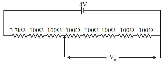 A potential divider circuit is shown in figure. The output voltage $\mathrm{V}_0$ is