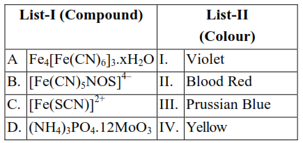 Match List I with List II Choose the correct answer from the options given below...