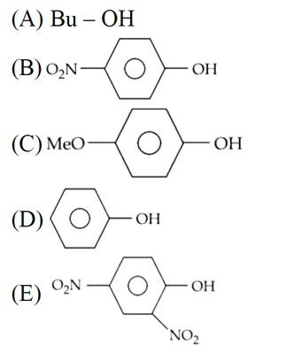 The ascending order of acidity of -OH group in the following compounds is : Choose...