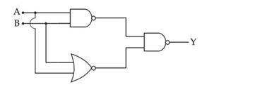 The output of the circuit is low (zero) for : (A) $X=0, Y=0$ (B) $X=0, Y=1$ (C) $X=1, Y=0$ (D) $X=1, Y=1$ Choose the correct...