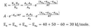 $\mathrm{Ea}_1, \mathrm{Ea}_2$ and $\mathrm{Ea}_3$ are 40,50 and 60" " kJ/mol respectively, the overall Ea is □( ) kJ/mol.
