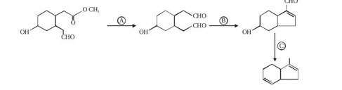 $\mathrm{A}=\mathrm{DIBAL}-\mathrm{H}, \mathrm{B}=\mathrm{NaOH}_{(\text {alc })}, \mathrm{C}=\mathrm{Zn} / \mathrm{HCl}$