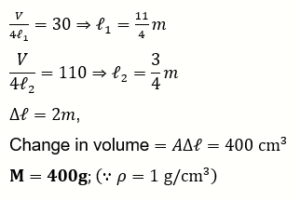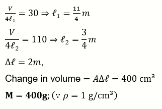 In a closed organ pipe, the frequency of fundamental note is 30Hz. A certain amount of water is now poured in the organ pipe so that the fundamental frequency is increased to 110 Hz. If the organ pipe has a cross-sectional area of $2 cm^2$, the amount of water poured in the organ tube is g. (Take speed of sound in air is 330m/s )