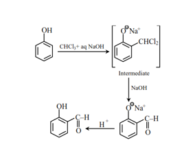 In Reimer - Tiemann reaction, phenol is converted into salicylaldehyde through an intermediate. The structure of intermediate is ______.