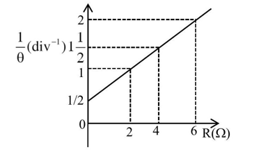 In the experiment to determine the galvanometer resistance by half-deflection method, the plot of $\frac{1}{\theta}$ vs the resistance $(R)$ of the resistance box is shown in the figure. The figure of merit of the galvanometer is $\_\_\_\_$ $\times 10^{-1} \mathrm{~A}$ /division. [The source has emf 2 V ]