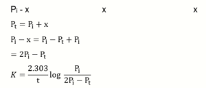 $k=\frac{2.303}{t} \times \frac{P_i}{\left(2 P_i-P_t\right)}$