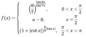 Where a,bβZ. If f is continuous at $\mathrm{x}=\frac{\pi}{2}$, then $\mathrm{a}^2+\mathrm{b}^2$ is equal to