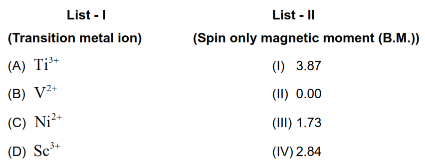 (A)-(III), (B)-(I), (C)-(II), (D)-(IV)