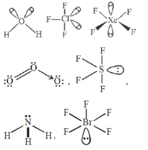 Number of compounds with one lone pair of electrons on central atom amongst following is $\mathrm{O}_3, \mathrm{H}_2 \mathrm{O}, \mathrm{SF}_4, \mathrm{ClF}_3, \mathrm{NH}_3, \mathrm{BrF}_5, \mathrm{XeF}_4$