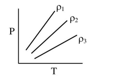 P-T diagram of an ideal gas having three different densities $\rho_1, \rho_2, \rho_3$ (in three different cases) is shown in the figure. Which of the following is correct :