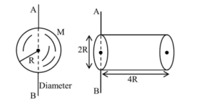 Ratio of radius of gyration of a hollow sphere to that of a solid cylinder of equal mass, for moment of Inertia about their diameter axis AB as shown in figure is $\sqrt{\frac{8}{x}}$. The value of x is: $\_\_\_\_$