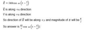 The electric field in an electromagnetic wave is given by $\overrightarrow{\mathrm{E}}=\hat{\mathrm{i}} 40 \cos \omega\left(\mathrm{t}-\frac{\mathrm{z}}{\mathrm{c}}\right) \mathrm{NC}^{-1}$. The magnetic
