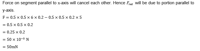 The magnetic field existing in a region is given by $\vec{B}=0.2(1+2 x) \hat{k} T$. A square loop of edge 50 cm carrying 0.5 A current is placed in $x-y$ plane with its edges parallel to the $\mathrm{x}-\mathrm{y}$ axes, as shown in figure. The magnitude of the net magnetic force experienced by the loop is mN .