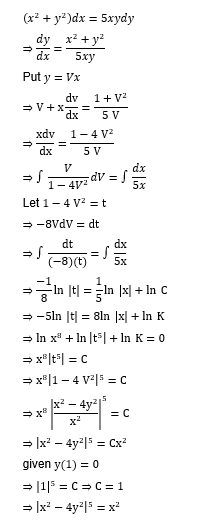 The solution of the differential equation $\left(x^2+y^2\right) d x-5 x y d y=0, y(1)=0$, is :