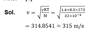 The speed of sound in oxygen at S.T.P. will be approximately: (Given, $\mathrm{R}=8.3 \mathrm{~J} \mathrm{~K}^{-1}, \gamma=1.4$ )