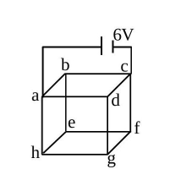 Twelve wires each having resistance $2 \Omega$ are joined to form a cube. A battery of 6 V emf is joined across point a and c . The voltage difference between e and f is V .